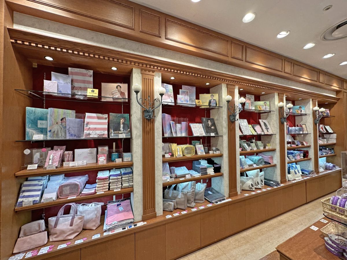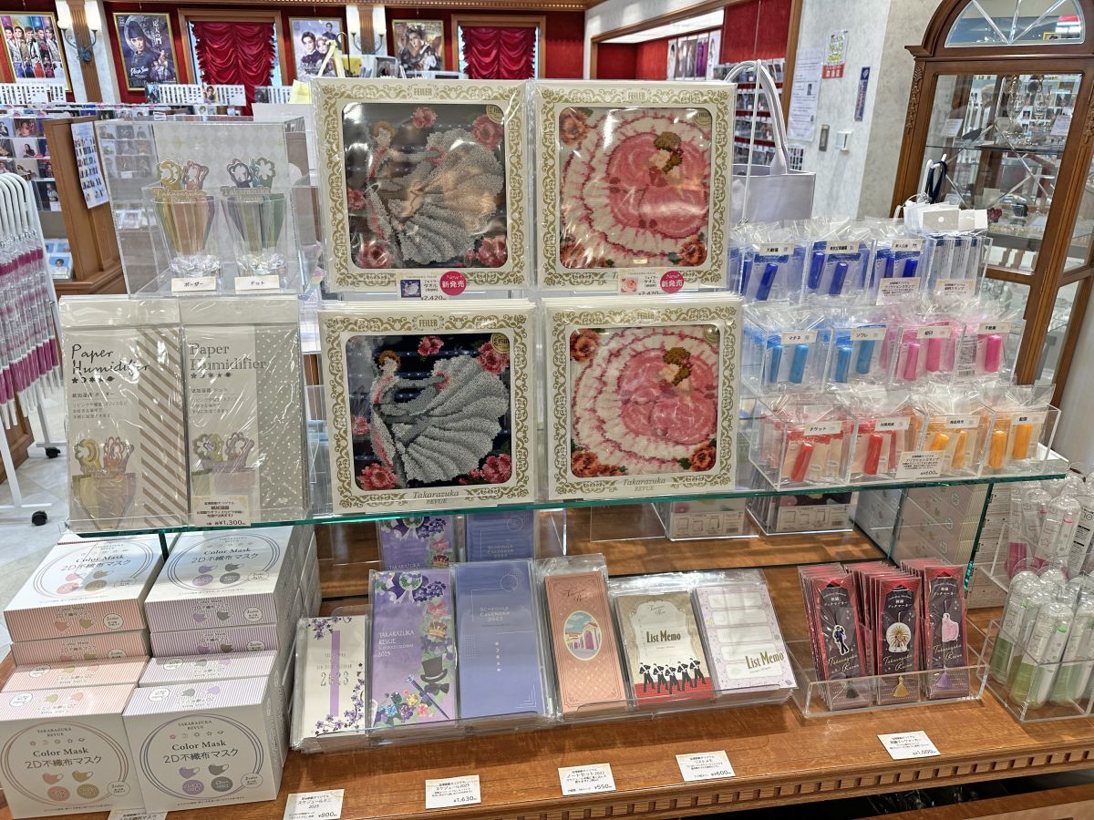 お店に入ってすぐ右の棚には、花組・月組・雪組・星組・宙組のトップスター監修グッズがずらり。憧れのスターを身近に感じていたい人にとっては、まさに夢のような一角!