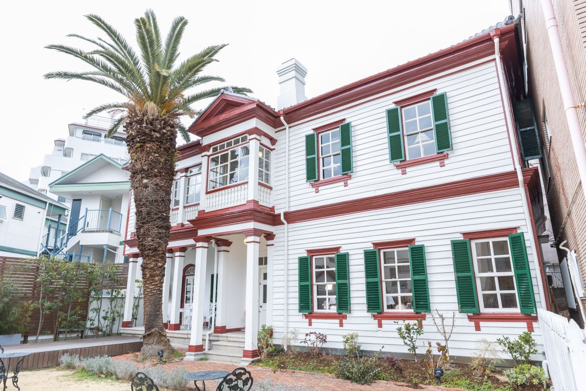 北野メディウム邸は、明治20年代に建てられた外国人貿易商の私邸と言われており、かつては「旧スタデニック邸」の名で知られていました。白を貴重に赤と緑を効果的に配した色使いが目を引く外観は、134年前に建てられたとは思えないほどポップでおしゃれな雰囲気です。