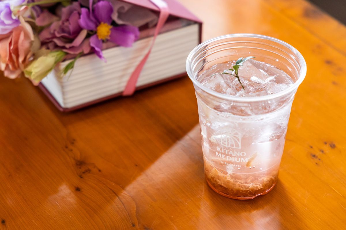 季節限定のカフェメニューとして登場するのが、バラの香りが楽しめる「ローズドリンク」800円。ほのかな甘みのある炭酸飲料に、食用のバラをジャムにして沈めていることで、口に含んだ瞬間、芳醇な香りがいっぱいに広がります。