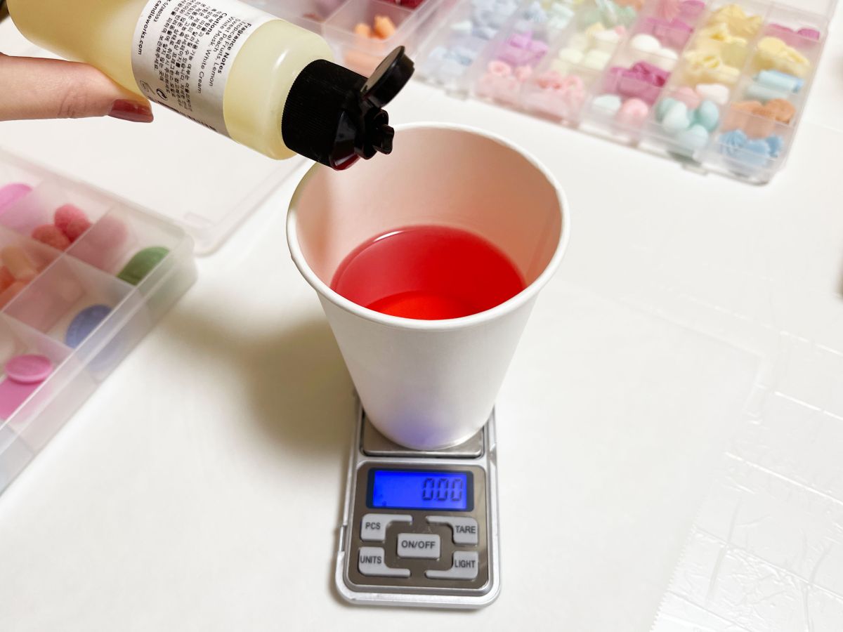 香りは計りながら加えていきます。実際のケーキ作りとは違って、多少オーバーしてもOKなので、不器用さんも安心!
