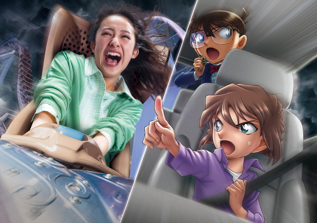 ハリウッド・ドリーム・ザ・ライドと「名探偵コナン」がコラボレーション。阿笠博士が開発に関わった新車の試乗会で緊急事態が発生!? ダイナミックなスピードの抑揚とコナンたちの声がシンクロし、作品の世界を疾走するストーリー・コースターは大興奮間違いなし!