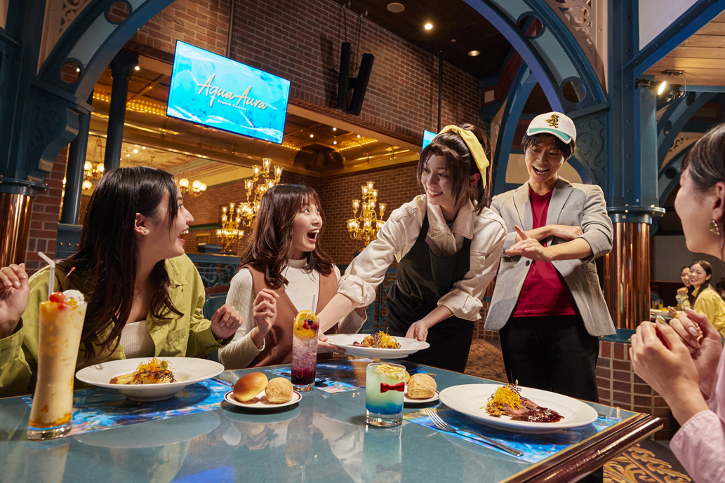 レストラン「アクアオーラ」のグランドオープンに来店したのは、平次、和葉、欄、そして私たち。そこで巻き込まれたある事件を解決するエンターテイメント・レストランです。店内で人気キャラクターが繰り広げる生のアクションは迫力満点です!