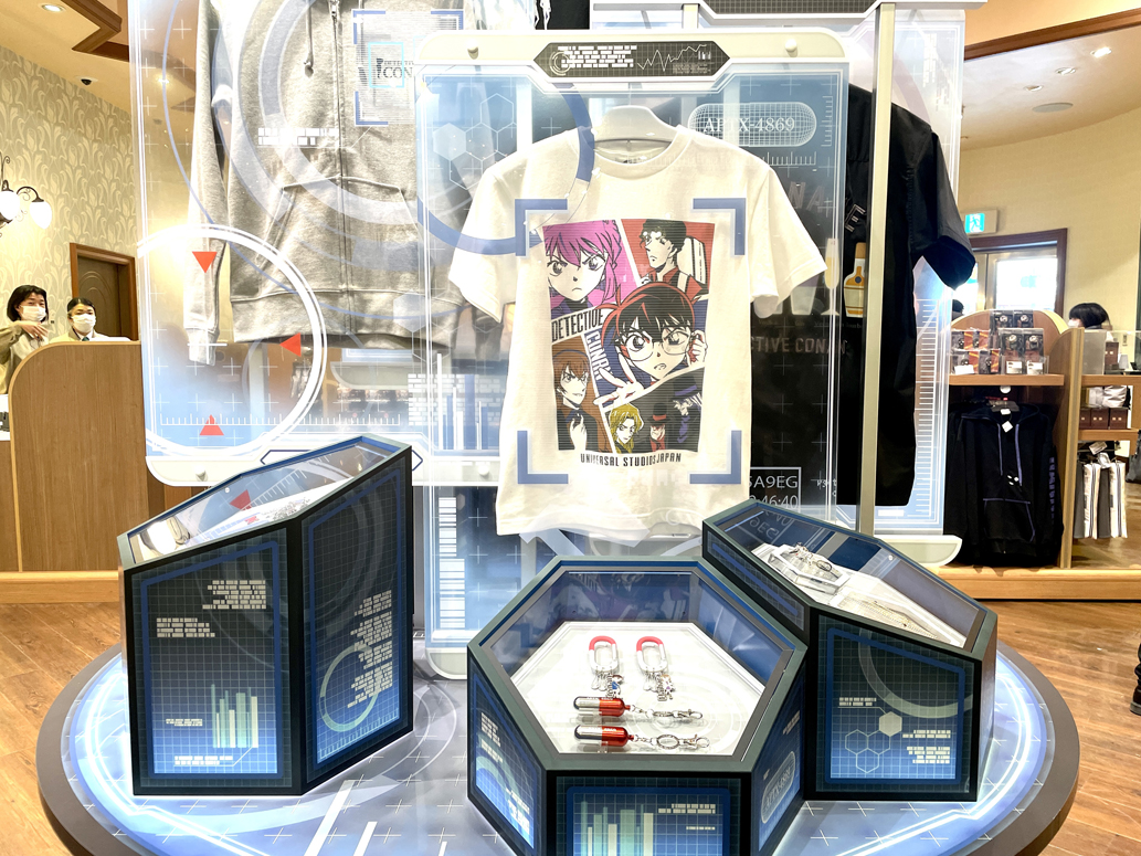 コナンのグッズコーナーには、腕時計やチケットホルダー、付箋スタンドやノートなど普段使いできるアイテムも充実。コナン、灰原、赤井、黒ずくめの組織など、キャラクターの個性をモチーフにしたデザインが魅力です。