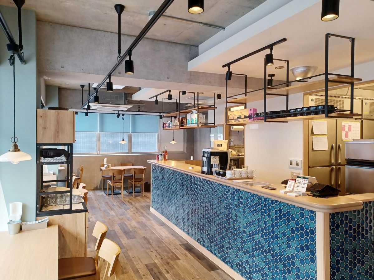 ブルーが映えるカウンターや壁が、さわやかな印象を演出します。