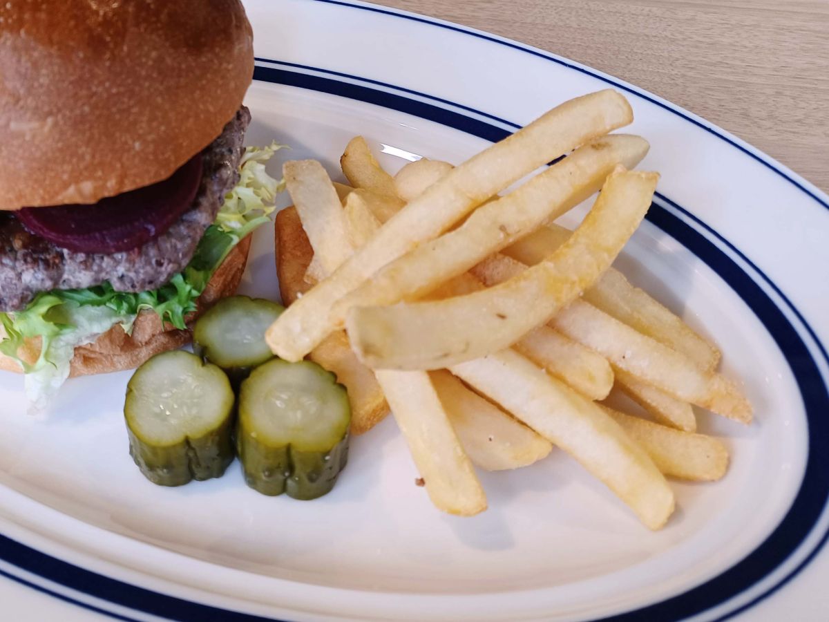 プラス350円で、どのバーガーにもポテトとピクルスが付けられます。