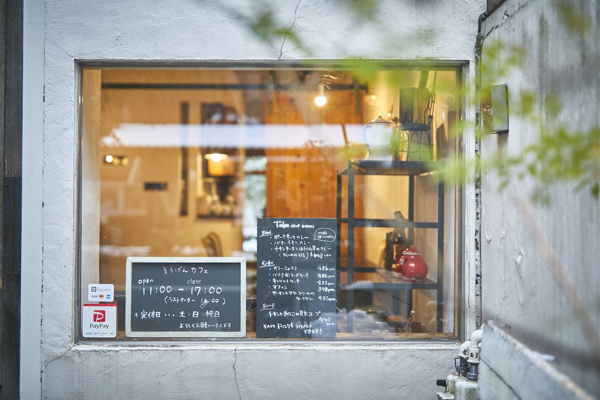 個性的な店舗が点在する白川通を北に進むと京都芸術大学があり、道路を挟んで向かい合う場所に「そうげんかふぇ」とアンティークショップ「sowgen brocante 北白川」があります。