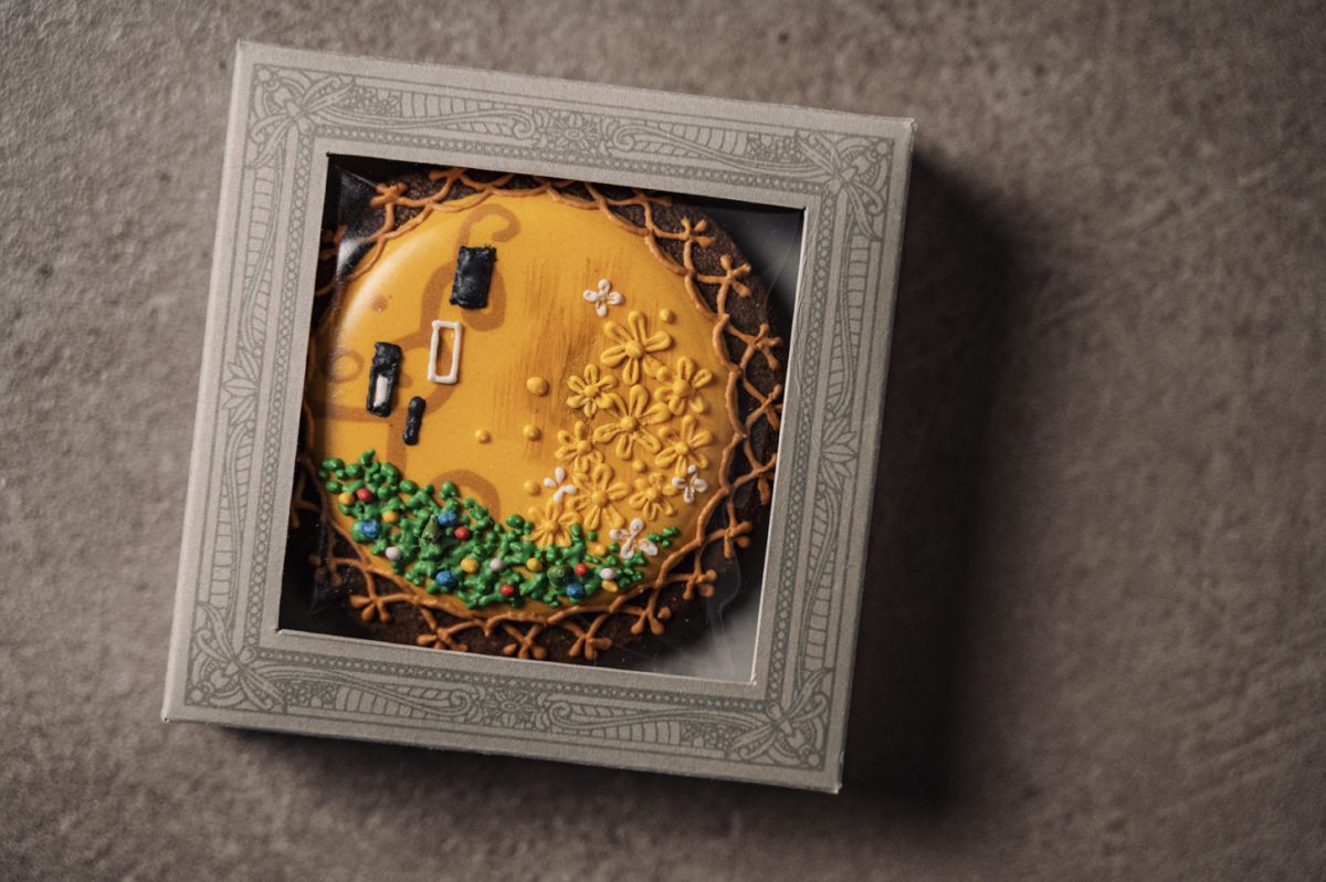 まずはこちら、名画をモチーフに、要素を抽出し表現したオリジナルアイシングクッキー。ほろ苦いココアのクッキーに、カラフルなアイシングをひとつひとつ手作業で施されていて、ドリンクとはまた違った表現を楽しむことができます。額縁のような箱に入ったギフトBOX入りも選ぶことができ、他にはないプレゼントとしてもおすすめです。