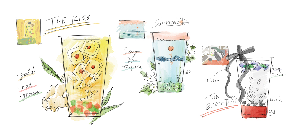 「ART mock drink」は、有名絵画からインスピレーションを受け、作品へのオマージュをこめてデザインや色、味でその魅力を表現した唯一無二のドリンク。日本でも圧倒的な人気を誇り、作品を所蔵する美術館も多いオーストリアを代表する画家・クリムトの代表作である「接吻」のほか、全6作の有名絵画のオマージュを込めてスタッフがデザインしたドリンクは、フルーツシャーベットのティーソーダや、エスプレッソ抹茶ラテ、アーモンドバニララテなど全部で6種類。それぞれどんな作品がモチーフになっているか、想像しながら楽しみましょう。