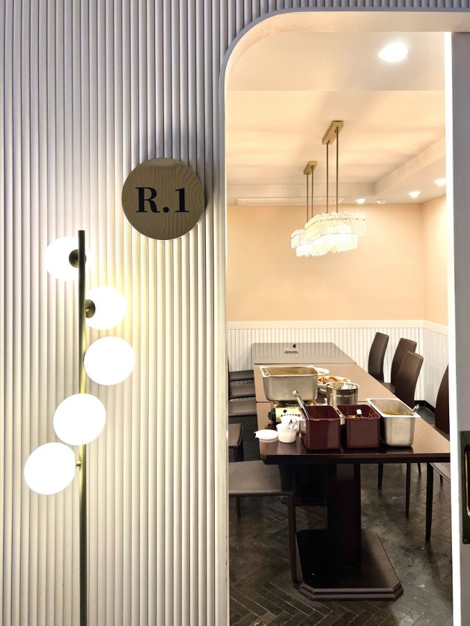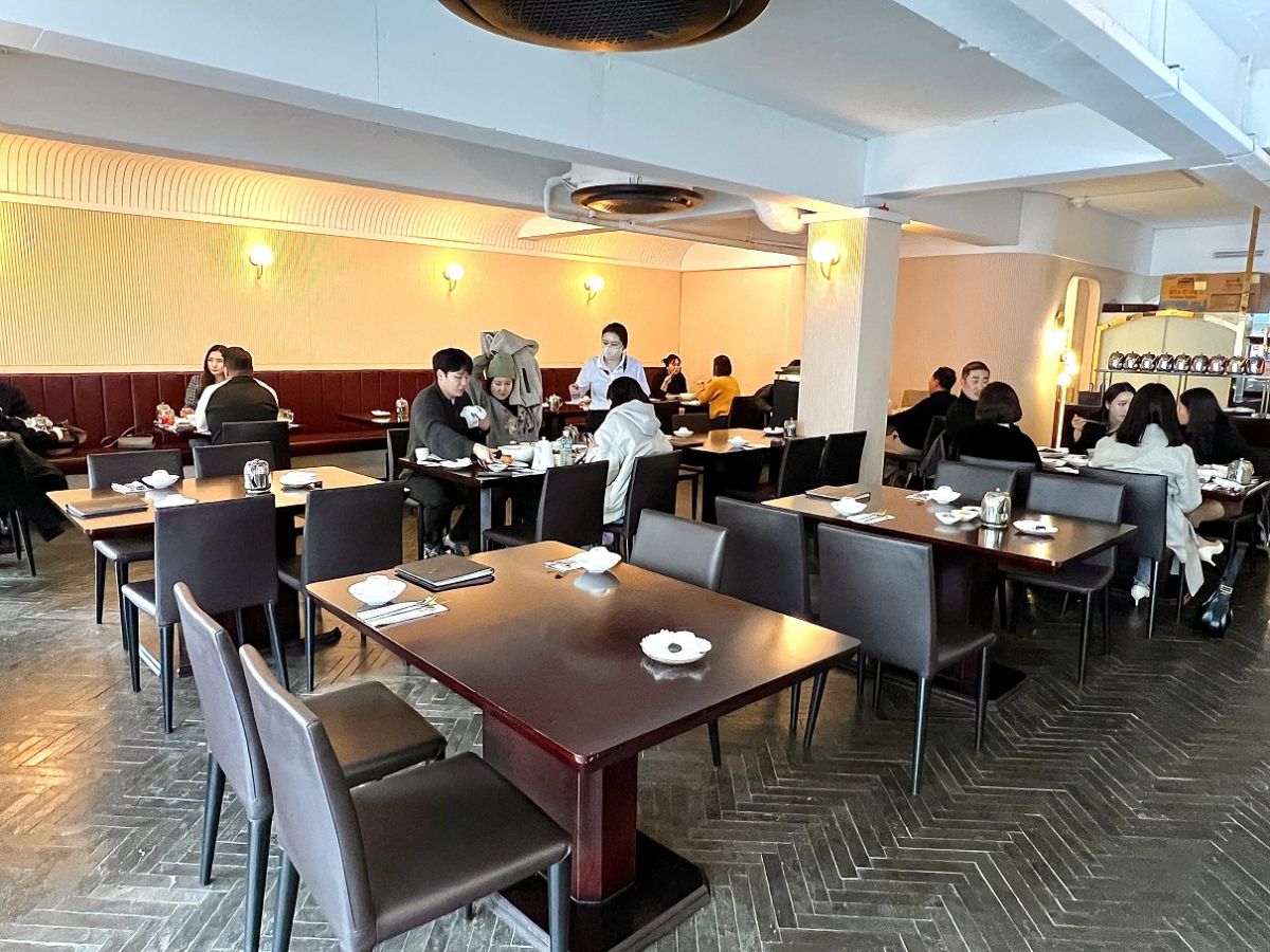 お店に入ると、ホールにはテーブルがずらりと並んでいて、奥には個室もありました。意外と、個室ではなくホールを予約するお客さんも多いそう。取材に伺ったのは15時を過ぎ、ランチタイムも終わるころでしたが、店内にはたくさんのお客さんが。お店の方にお話を聞いたところ、より多くのお客さんに食事を楽しんでもらいたいというお店の方針で、ランチ営業とディナー営業の間のブレイクタイムは設けていないんだとか!