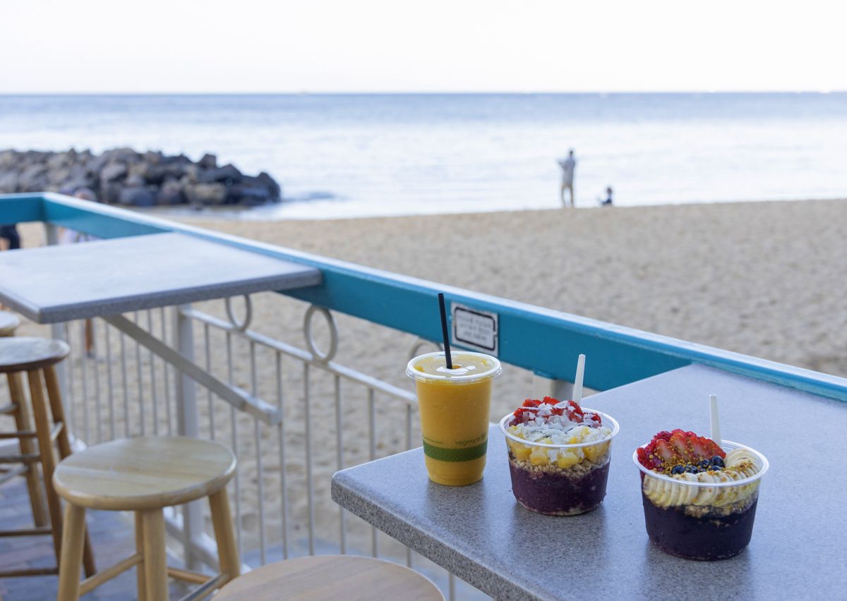 お店は午前8時から営業しているので、朝活のお供にスムージーをテイクアウトして、まだ人が少ない静かなビーチをのんびり散歩するのもいいですね。