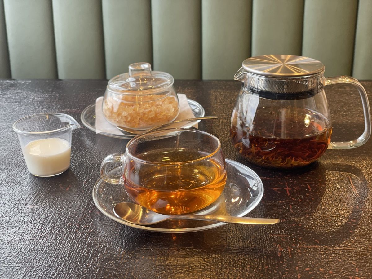 甘味の味を引き立てるドリンクメニューも充実。かいらしおもちや箱のセットドリンクは好きなものを選べますが、特におすすめは、「国産和紅茶」(単品の場合、ホット900円、アイス770円)。宇治の京都茶園の玉露用の茶葉でつくられたこだわりの国産紅茶は、渋みが少なくてまろやかです。和菓子との相性も抜群!ホットはガラスのティーポットで提供され、2杯目、3杯目もおいしくいただけます。