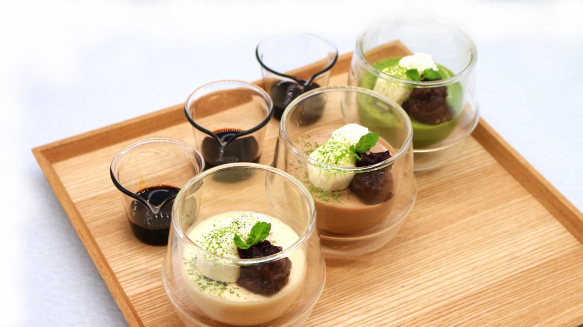 「きぬふくぷりん」宇治抹茶・焦がし玄米ほうじ茶・カスタード各770円(ドリンク付各1270円)は、隠し味にマスカルポーネを使用した、絹のように滑らかでコクのあるプリンです。店頭での販売もあるので、テイクアウトもOK!ほかにも、おみやげにしたい商品がたくさん並んでいます。