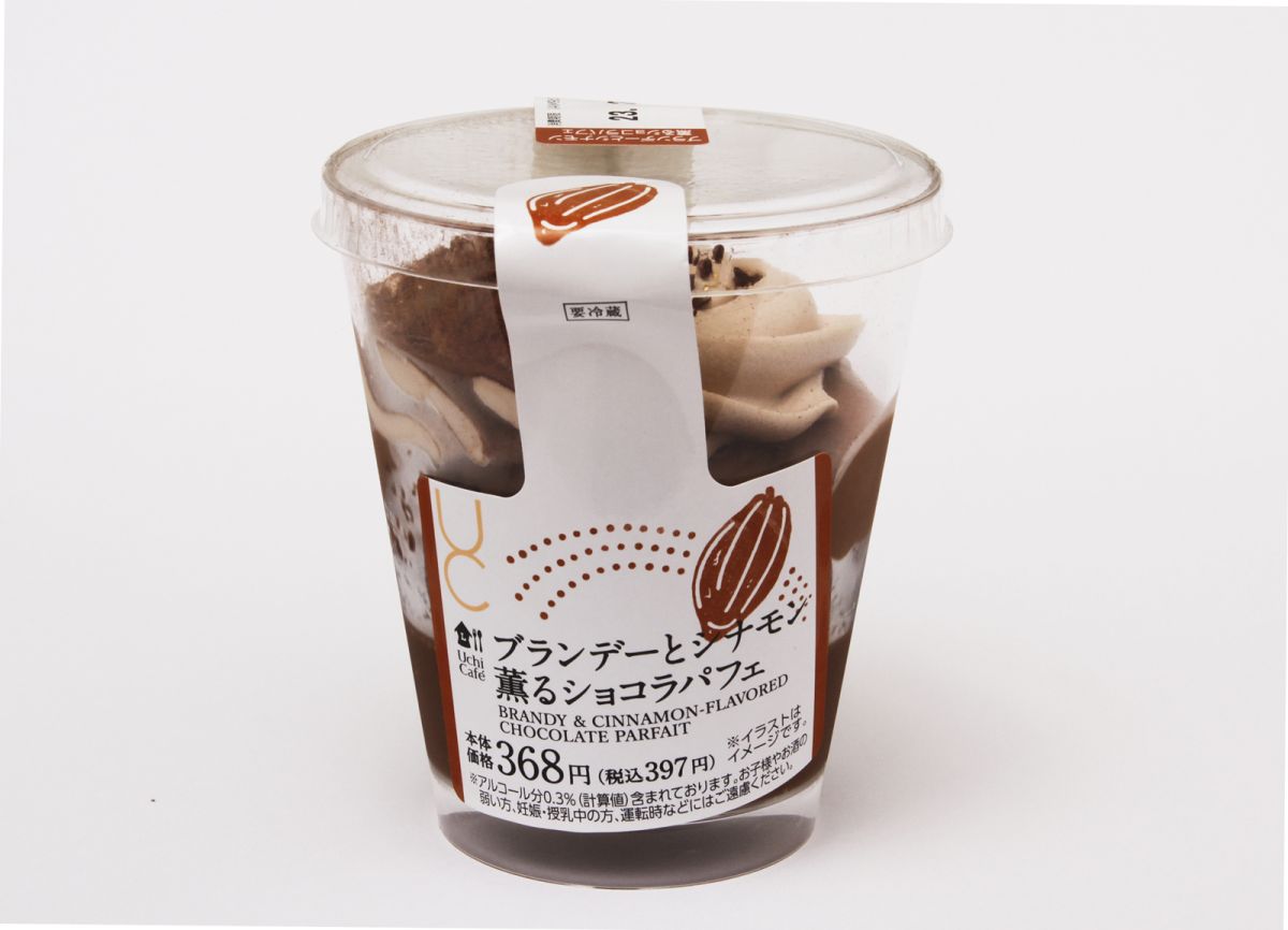 次にご紹介するのが同時期に発売された「Uchi Café ブランデーとシナモン薫るショコラパフェ」397円。