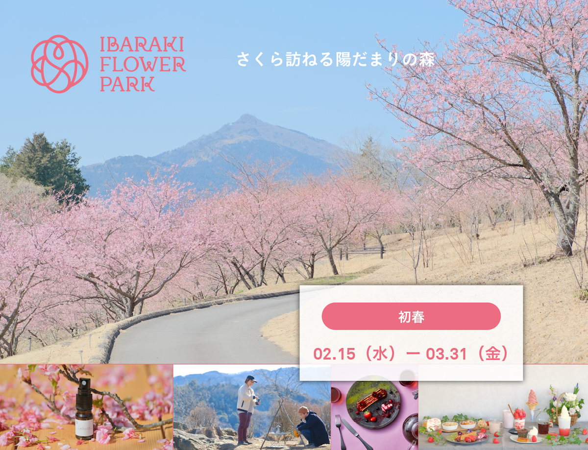 美しい四季の花々が咲き誇る茨城県の「いばらきフラワーパーク」では、本州一の早咲きの桜、河津桜が見ごろとなりました!さらにフラワーパーク周辺ではイチゴ農家が収穫期を迎えています。2023年3月31日(金)までの期間は、桜とイチゴをテーマにしたイベント「さくら訪ねる陽だまりの森」を開催。お花見はもちろんBBQやスタンプラリー、イチゴフェアなど春を満喫するお楽しみが待っていますよ!
