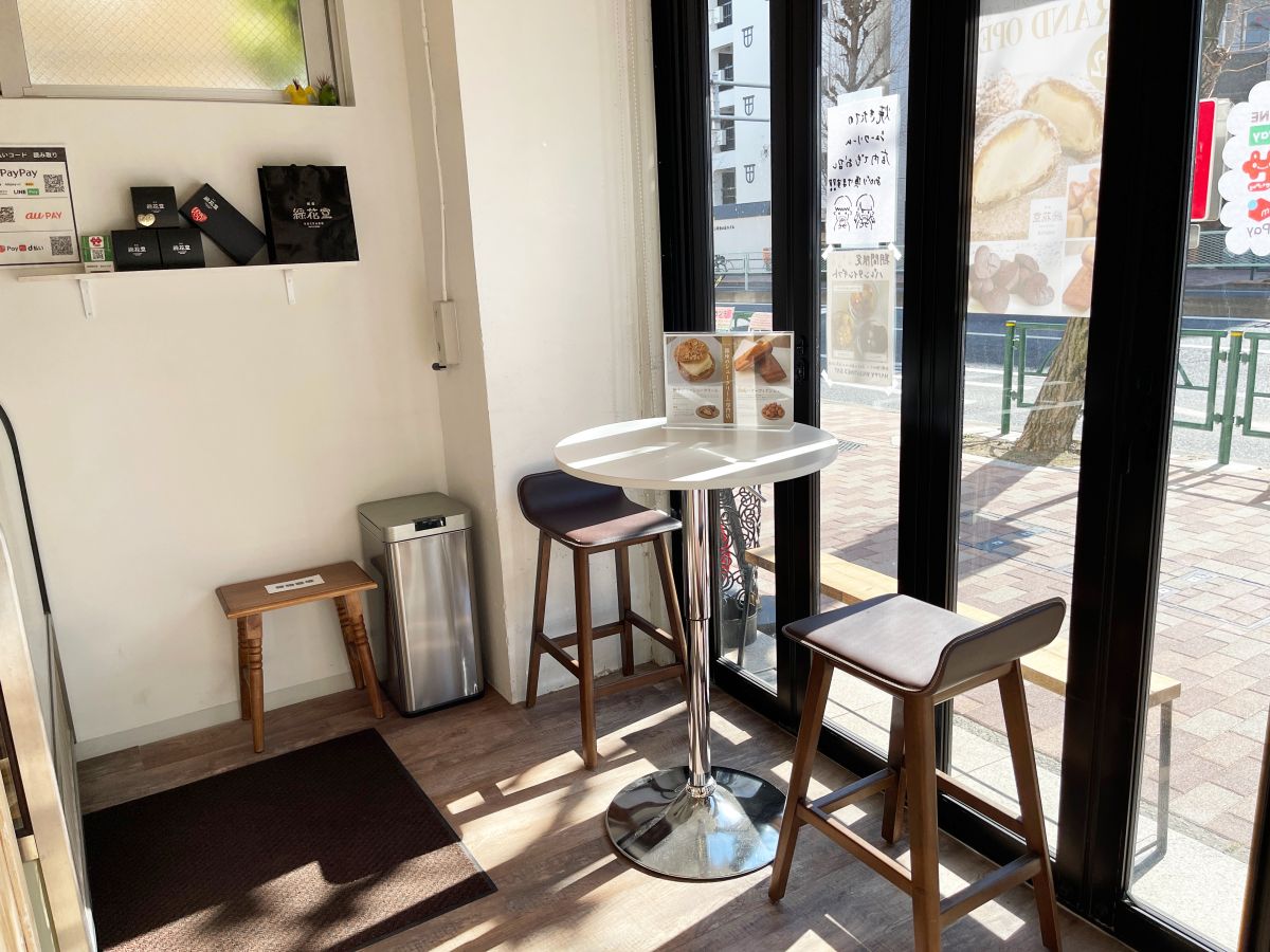 テーブルが1つ、椅子が2席あるので、イートインも可能です。外のベンチでも食べられます。
