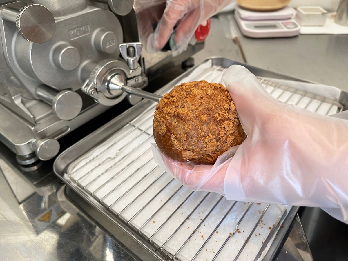 オーダーが入ってからシュー皮をリベイクし、カスタードクリームを丁寧に注入してくれます。