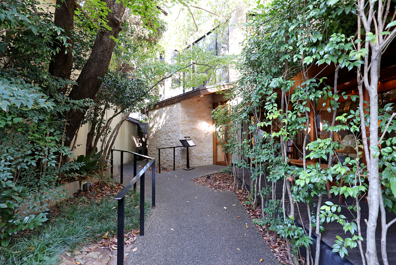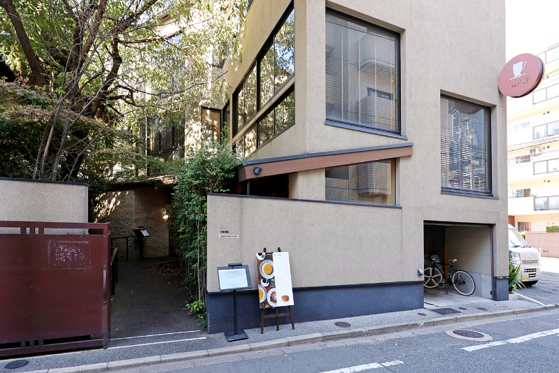 「白金茶房」は、カフェには珍しく2階建ての一軒家タイプ。店内へ誘う緑のアプローチも風情があり、ちょっとした高級レストランに来たようで気持ちが高まります。