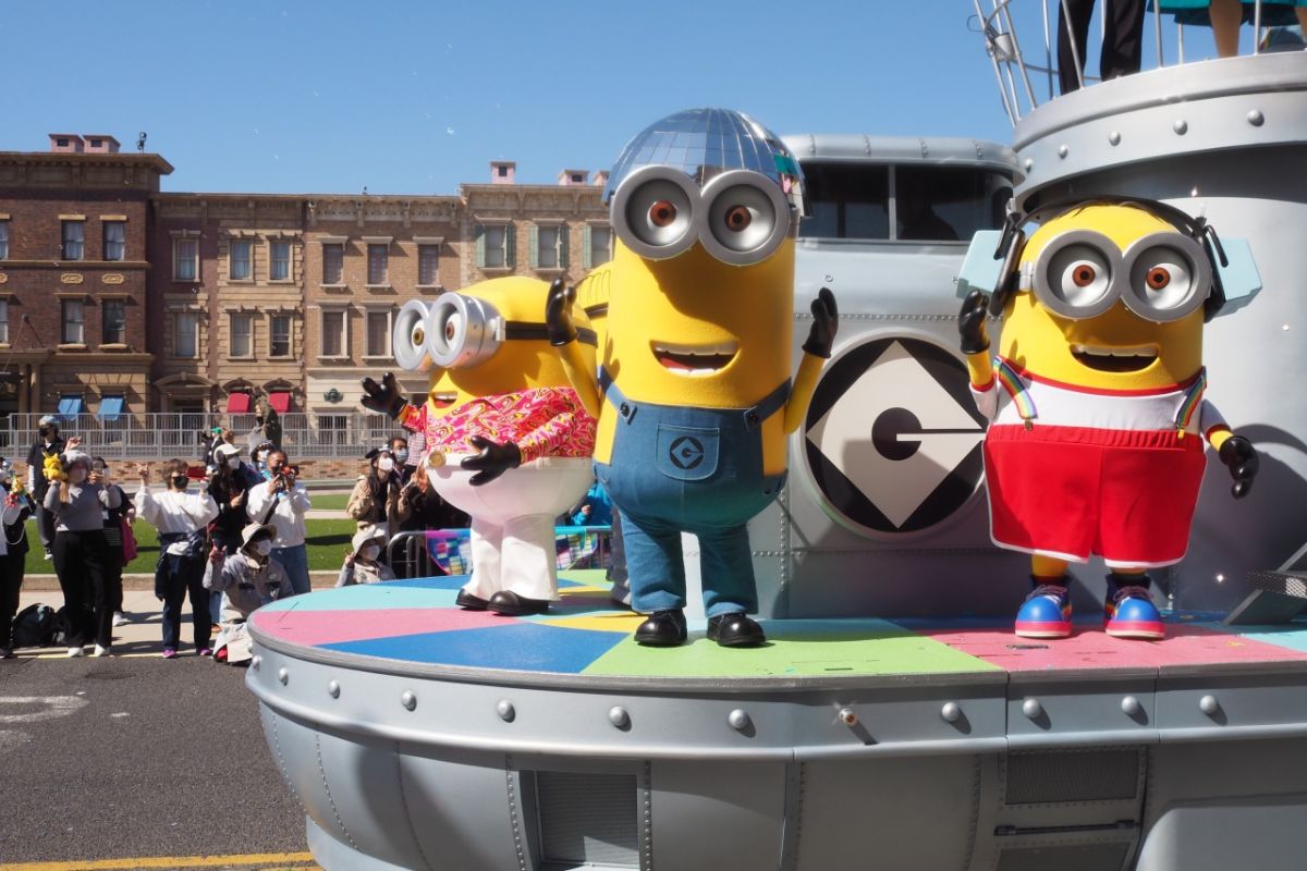 パークではもうすっかりおなじみのミニオンたちも、かわいく着飾ってやって来ました。体をゆらしてキュートに踊るミニオンに観客のテンションもUP!