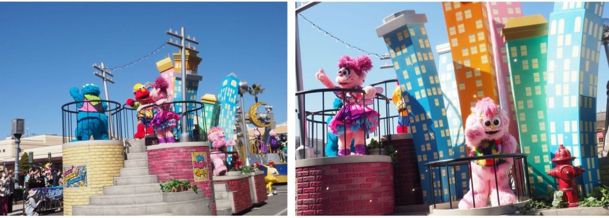 まだまだ続きます、キャラクターたちのフロート。次にやって来たのはシングユニット。映画『SING』でおなじみのキャラクターたちが目の前にやって来ます!