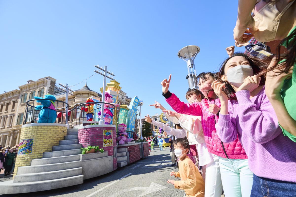 2023年3月1日(水)にグランドオープンした「NO LIMIT! パレード」はおよそ2年半ぶりとなるデータイムパレード。マリオと仲間たちのフロートと、ポケモンのフロートがひとつのパレードに揃うのはテーマパーク史上初めてのこと。そのほか、ハローキティやミニオン、セサミストリートなども集結し、なんとパークの歴代パレード史上最大スケールとなるキャラクターラインアップなんです!続々と現れる人気キャラクターたちに、興奮が止まりません!