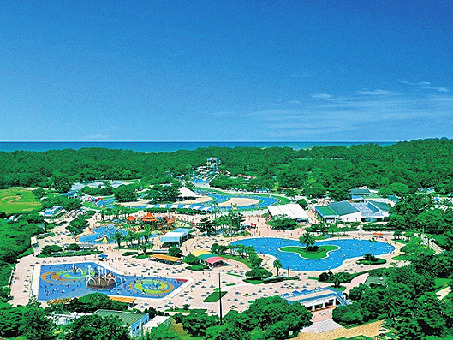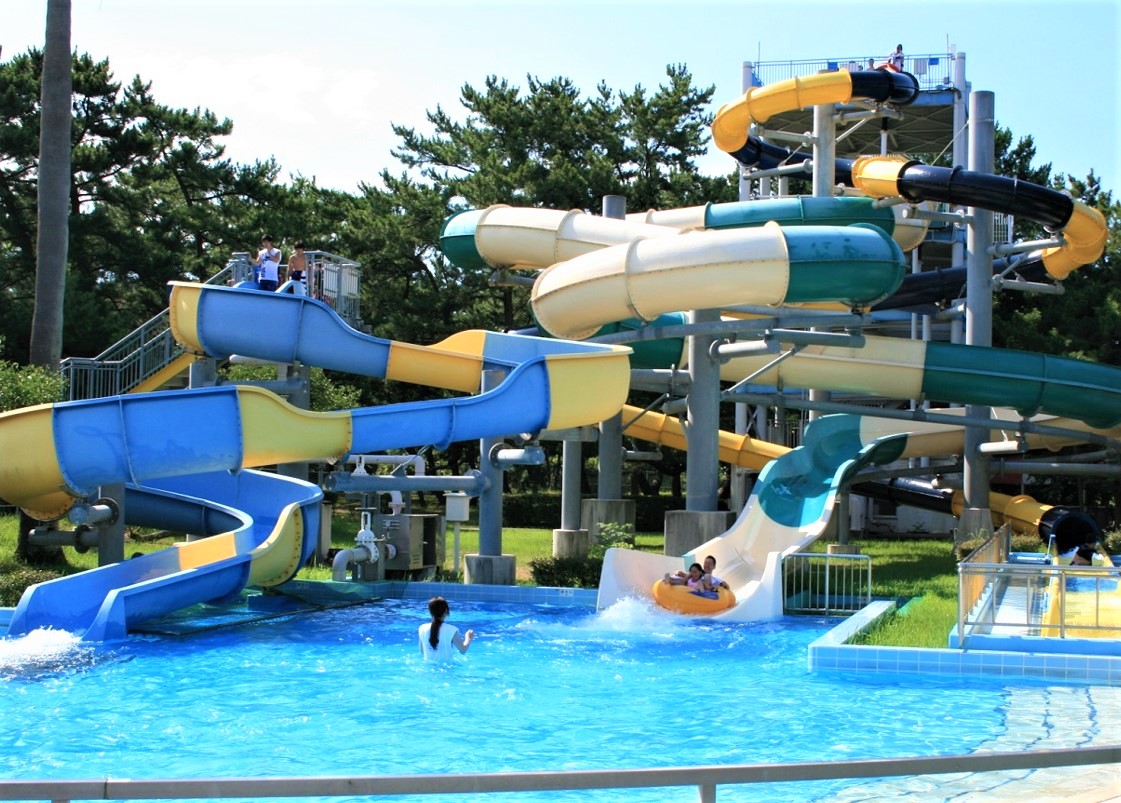 また夏限定のサンシャインプール(料金別途)も大人気。幅7m、長さ300mの流れるプールや、3本のドラゴンスライダー、約40種類の遊具が配置されたウォータージャングルなど、遊び心満載のプールが特徴的です。