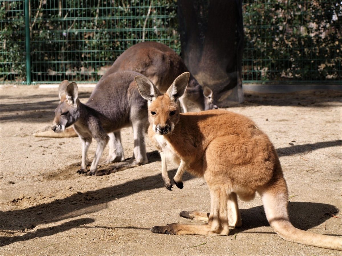 愛くるしい顔のカンガルー。足を投げ出してくつろぐ姿を見ることができるかもしれません。