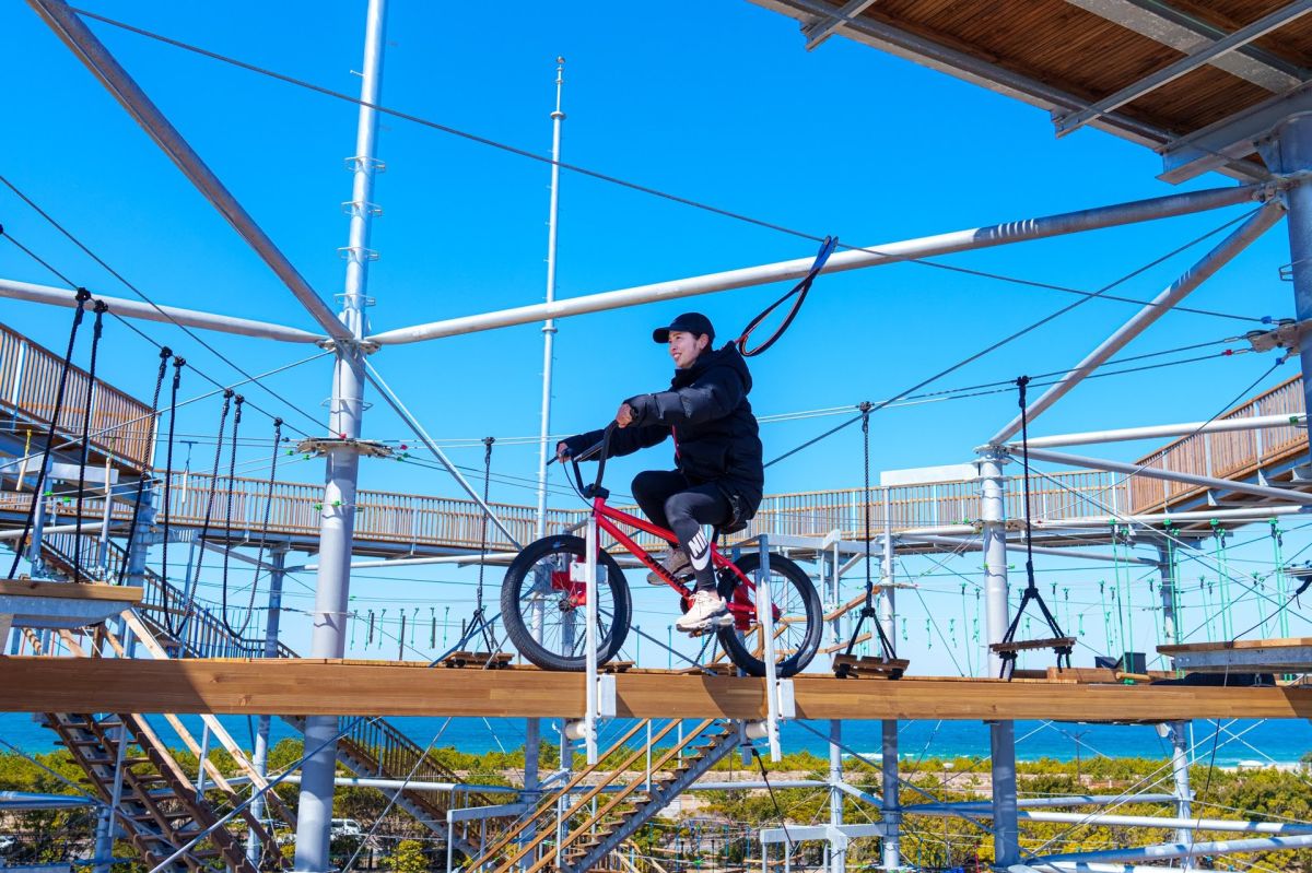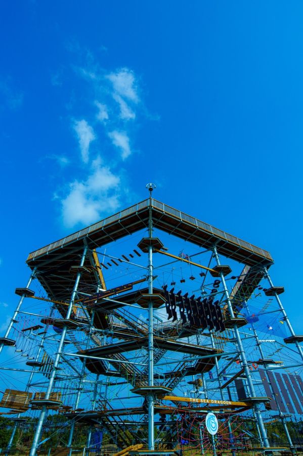 「シー・ドラグーン」は、空と海をバックにそびえる巨大アスレチックタワー。92のアトラクションが3層にわたって設置されているので、頭と体をフル稼働して攻略しましょう。最上層にある「天空回廊」からの景色もすばらしいです。