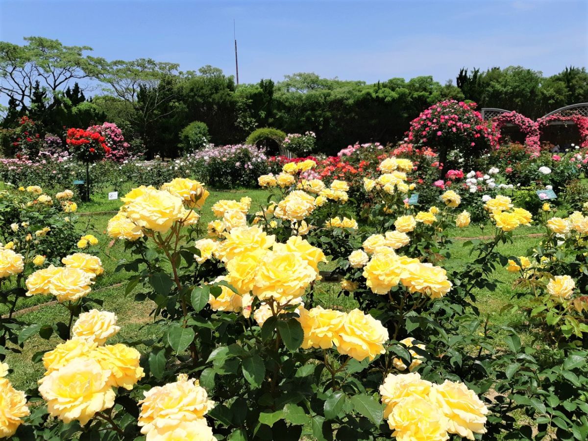 バラの見ごろは1年に2回あります。春は5月上~下旬、秋は10月下旬~11月中旬。春には約220品種1800株もの花が咲き、甘い香りに包まれます。