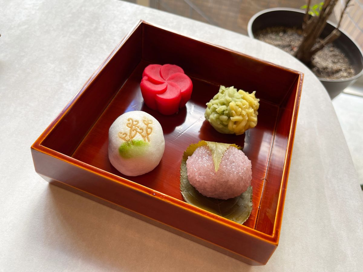 こちらも一膳目は抹茶とともに楽しめ、二膳目はお茶請けとほうじ茶が味わえます。