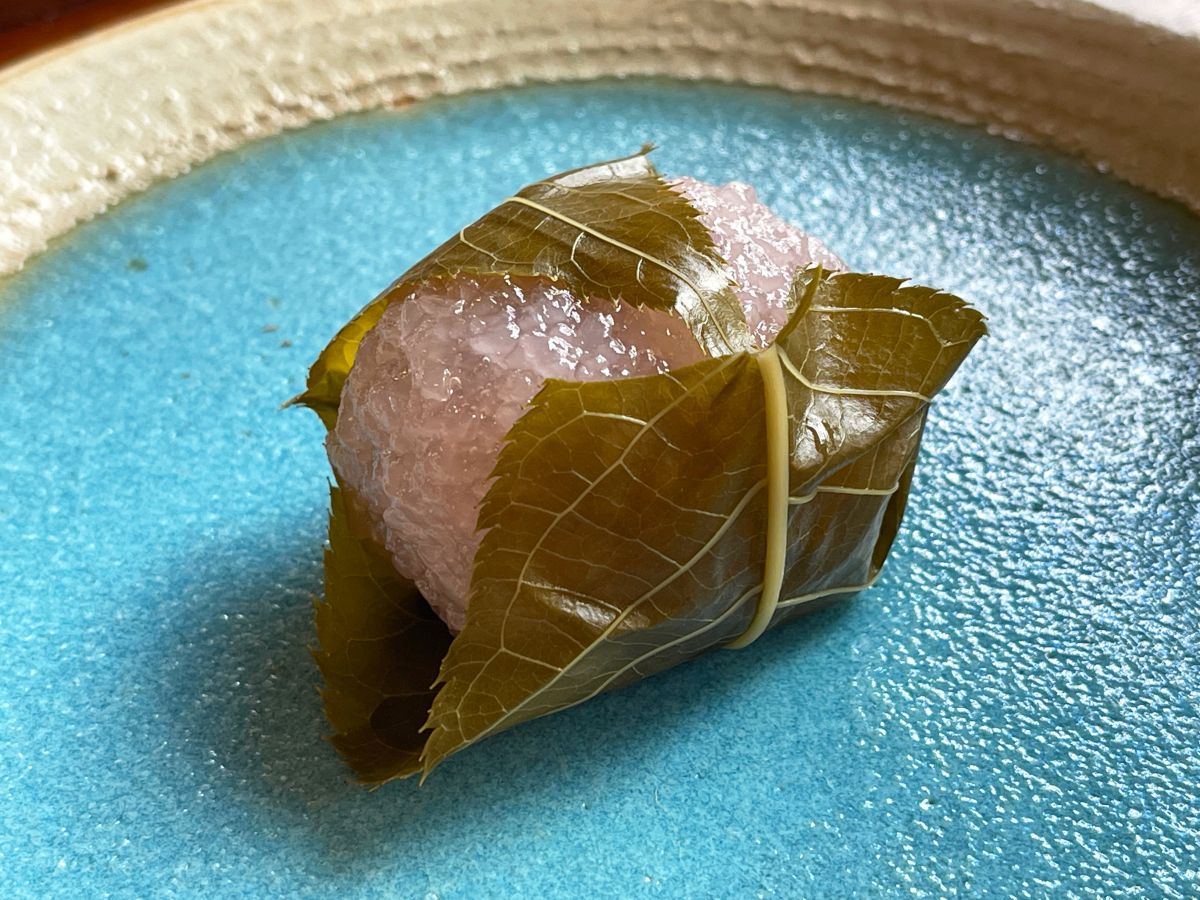 粒感が残るもちもち食感の生地と、上品な甘さのこしあんのバランスが絶妙で、桜の葉のやさしい塩味もいいアクセントになっています。
