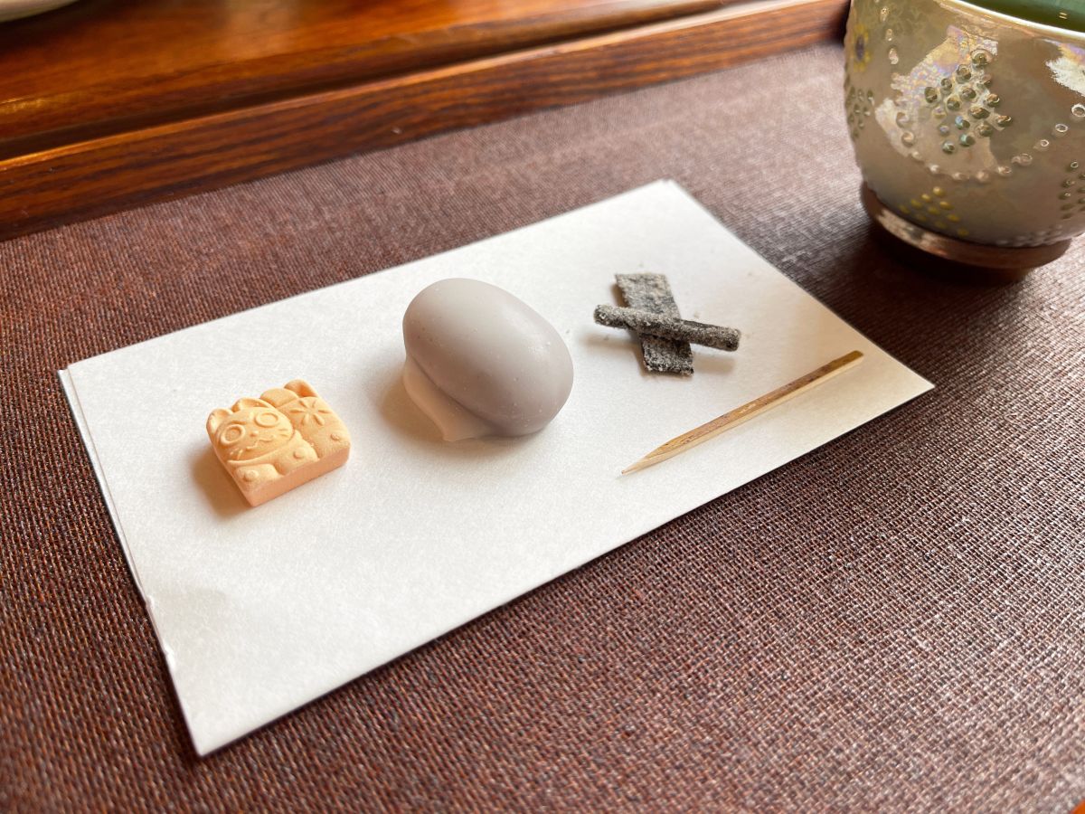 コースは一膳目と二膳目があり、一膳目では上生菓子と抹茶、二膳目ではお茶請けとほうじ茶が味わえます。