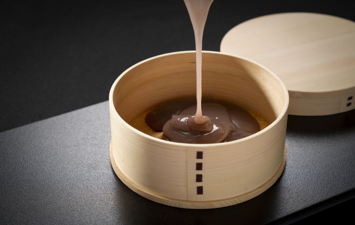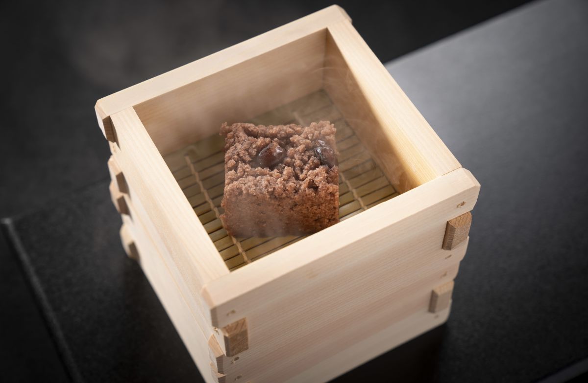 小豆あんに餅粉などの米粉類を混ぜてそぼろ状にし、大納言の蜜漬けをちらして蒸し上げた「御目出糖」は、もちもちとした食感が特徴の和菓子。そんな銘菓を、蒸籠で蒸したての状態でいただけるのはこのカフェだけ! ぜひ蒸したて熱々を体感してみて。
