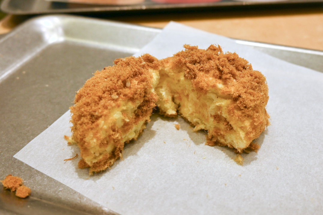 とろける豆乳クリームに乾燥させた豚肉をまぶしてあり、ほおばると甘じょっぱい味が口に広がります。
