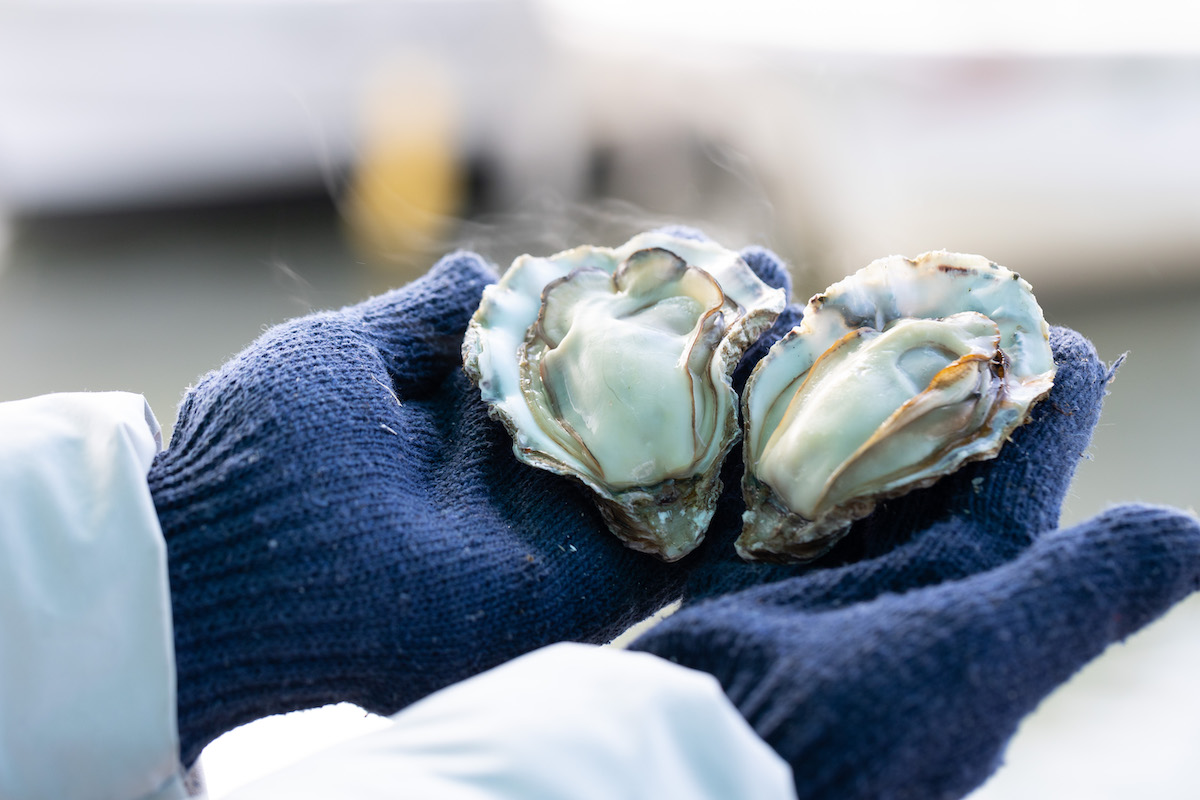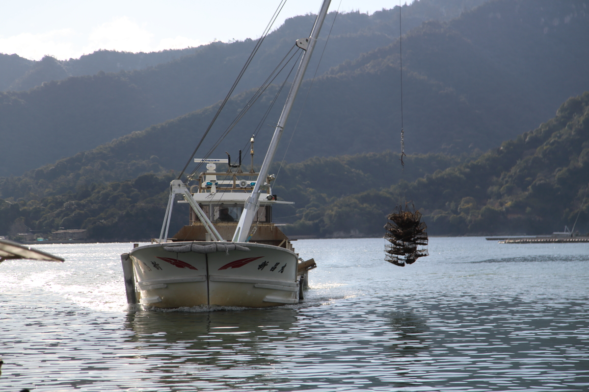「栄養分が豊富ゆえ、ここらへんの牡蠣はほとんどが加熱用なんですよ!」と漁師さん。たくさんの栄養分を含んだ広島牡蠣は、焼いても茹でても縮みにくいのが特徴なのだそう。
