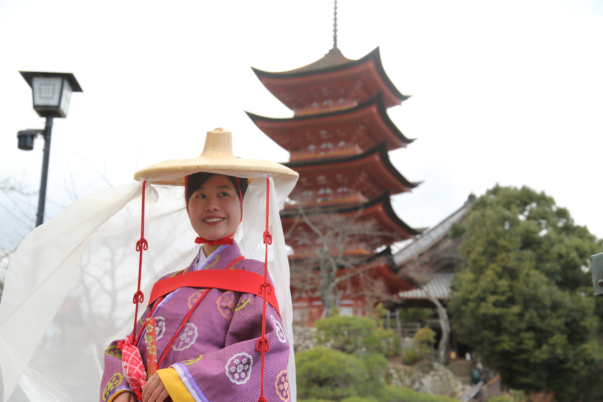 【14:00】気分は平安時代のお姫様♪平安壺装束を身にまとい、雅な宮島散歩