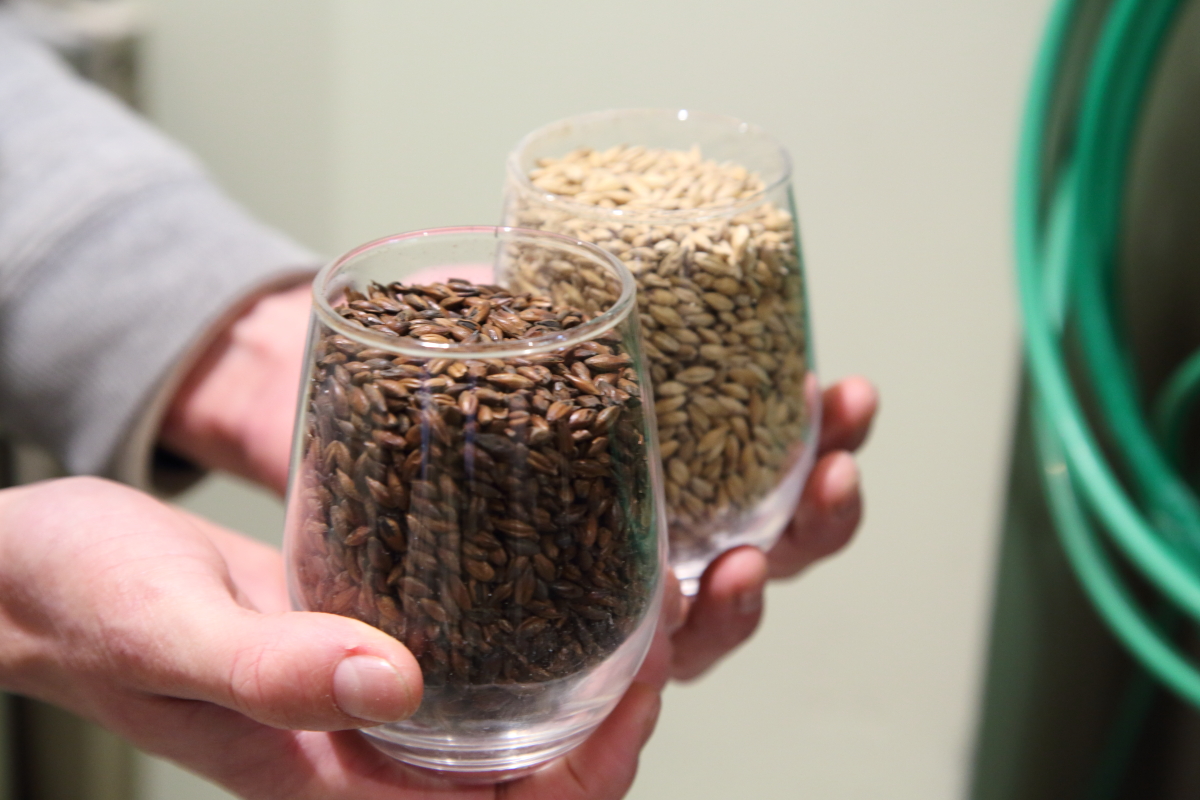 通常の麦芽とローストした麦芽を食べ比べながらどんなビールができ上がるのか想像を膨らませます。