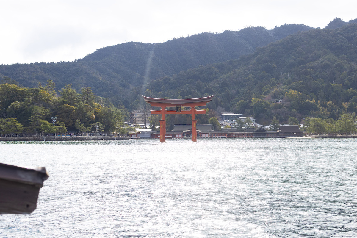 牡蠣いかだを見学した後は宮島沖、嚴島神社の大鳥居近くまで船を走らせてくれます。世界遺産・嚴島神社が海上から参拝できる、とても貴重な経験でした。