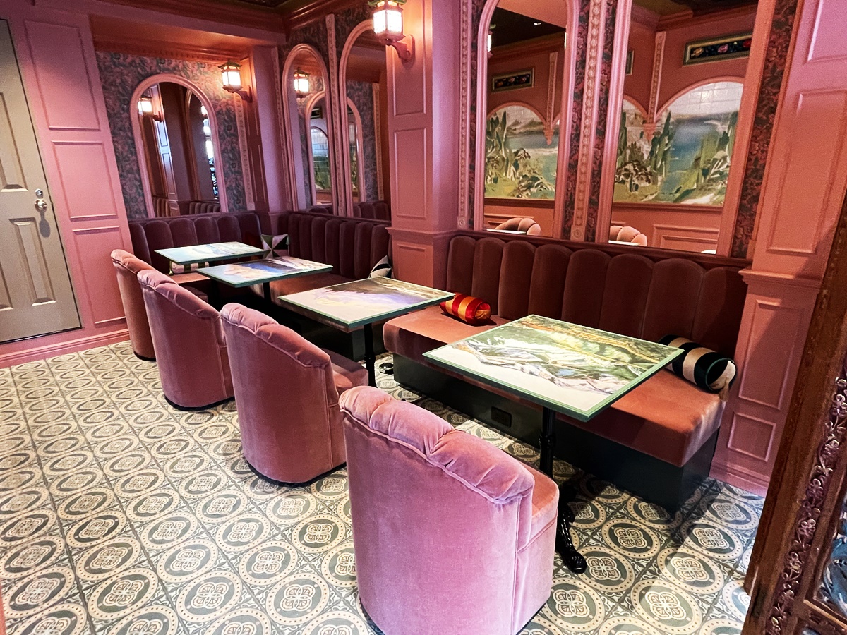 “桃源郷の土産物屋”というコンセプトに合わせ、店内も桃色が基調です。