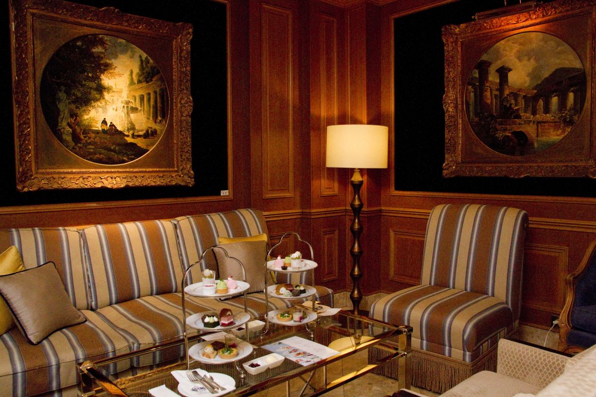 本館1階ロビーラウンジにある「ラ・テラス」は、クラシカルな本館と新館をつなぐ位置にあります。2023年4月30日(日)まで提供される「春のアフタヌーンティー」はこちらで楽しむことができます。ヨーロピアン調の家具が配置され、中庭が見える窓辺の席や、絵画に囲まれたソファ席など、昼下がりの時間をゆったり過ごすのにふさわしい優雅な空間です。