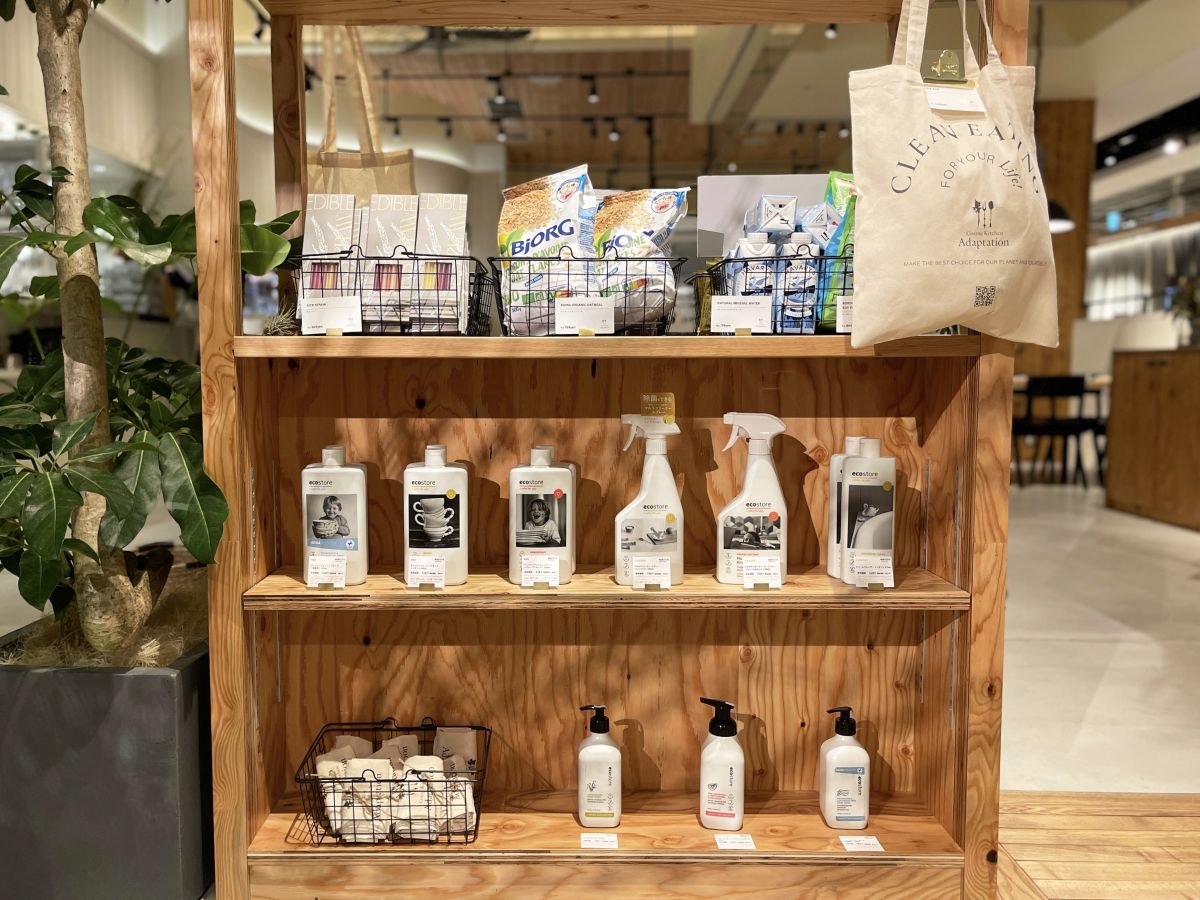 店頭では、米ストローやエコ洗剤、植物性食品など、エシカルなアイテムの販売も。サステナブルな取り組みがこんなにもあることを知るきっかけにもなるはずです。