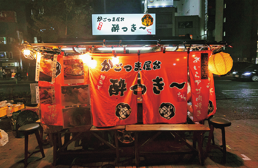 福岡で鹿児島の味が楽しめる屋台で、大将はJR鹿児島中央駅前にあった屋台村で修業したあと、福岡で屋台をはじめました。屋台名は大将の愛称「よっきー」の「よ」に「酔」をあてたもの。鹿児島ならではの芋焼酎も豊富で「白金乃露」や「魔王」が飲めます。