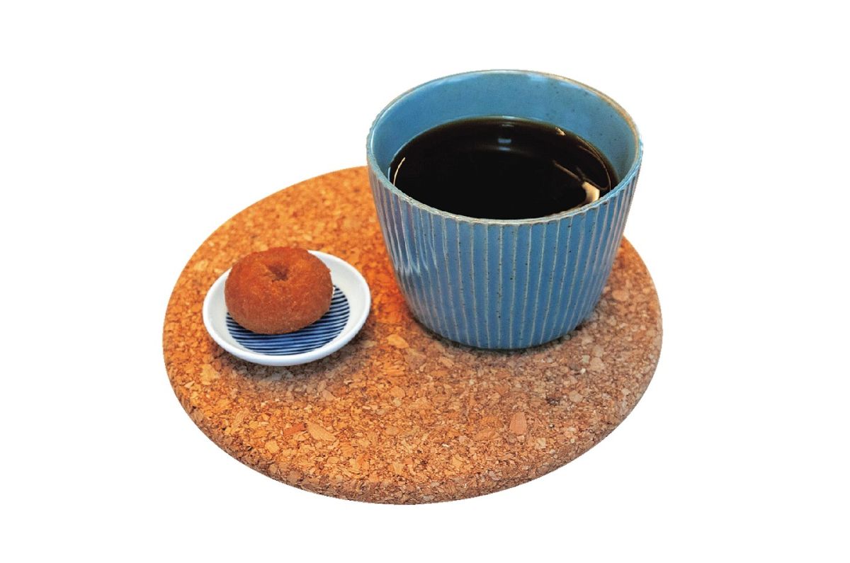 写真の「メガネブレンド」700円は、5カ所の産地の豆をそれぞれローストしてブレンドされたコーヒー。ミニドーナツが付きます。