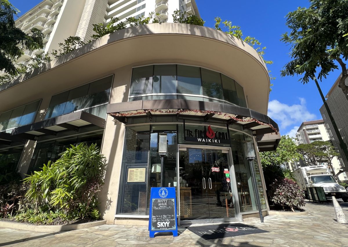 テレビ番組「有吉の夏休み」で紹介されたことでも話題の「TRファイヤーグリル」は、ワイキキのクヒオ通りとワリナ通りの角に位置します。インターナショナルマーケットプレイス向かいの「ヒルトン・ガーデン・イン・ワイキキ・ビーチ」の1階にあり、ワイキキのホテルからアクセスが便利なのもうれしいですね。