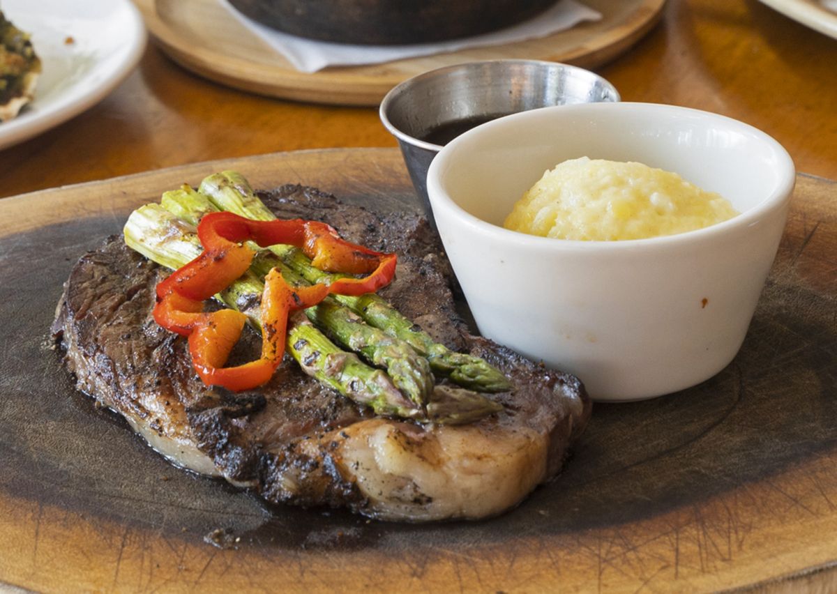 ヒッコリーウッド(クルミ科の落葉広葉樹)のスモーキーな香りが鼻腔をくすぐるプライムリブの表面は香ばしく、中はしっとり滑らかで、口の中でとろけるよう。ステーキソース代わりの肉汁も添えられていますが、なにもつけずに食べても完璧なおいしさです。お肉の量は10オンス(約283g)と16オンス(約453g)の2サイズがあるので、人数や食欲に合わせてオーダーできますよ。