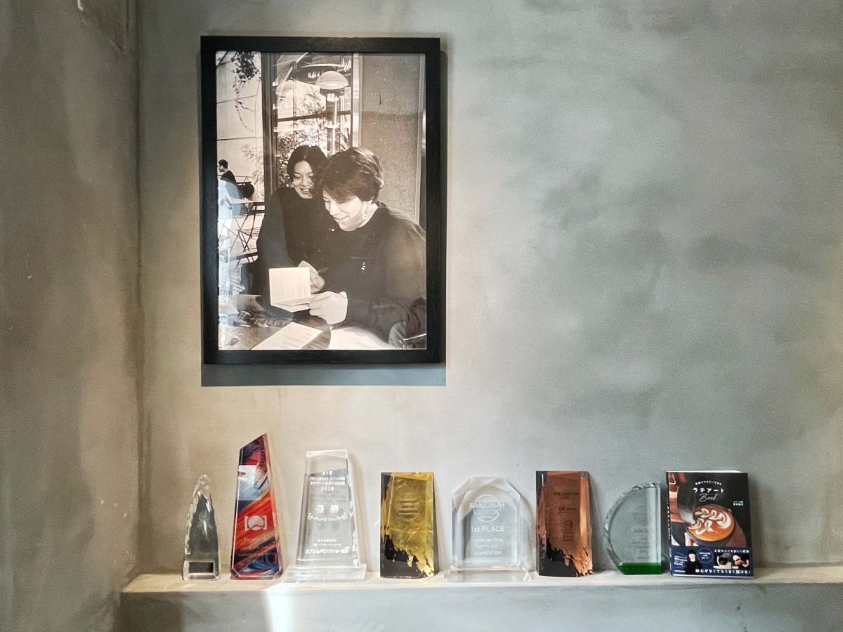 3月に出版された馬場さんの著書『最速でマスターできるラテアートBook』も並んでいて、ラテアート文化の発信地になっています。