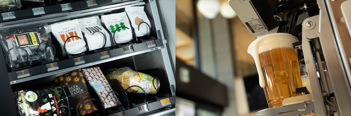 福岡県内でワイナリー、レストランなどを営む「ぶどうの樹」がプロデュースする店内には、冷凍食品やおつまみ、地ビールなどを販売する自動販売機も。冷凍食品といっても、店オリジナルの商品。「九州鶏のチキンマカロニグラタン」760円や「北九州名物 焼きカレー」680円など、地元・福岡の食材を中心に使用したメニューがずらり。電子レンジも備えられているので、その場でチンして食べることができますよ。