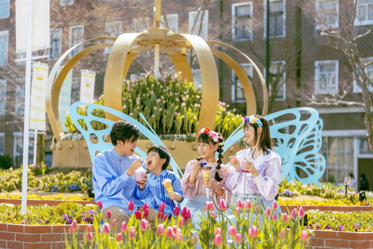 「100万本のチューリップ祭」期間中は、「フラワーフェスティバル~花と光のイースター~」も同時に開催されています。イースターイベントは4月28日(金)まで。 ヨーロッパの街並みにカラフルなたまごやビッグフラワーツリーが並び、そこにいるだけでワクワクする特別な期間です。イースターバージョンのパレードやグルメも楽しんでみてくださいね。
