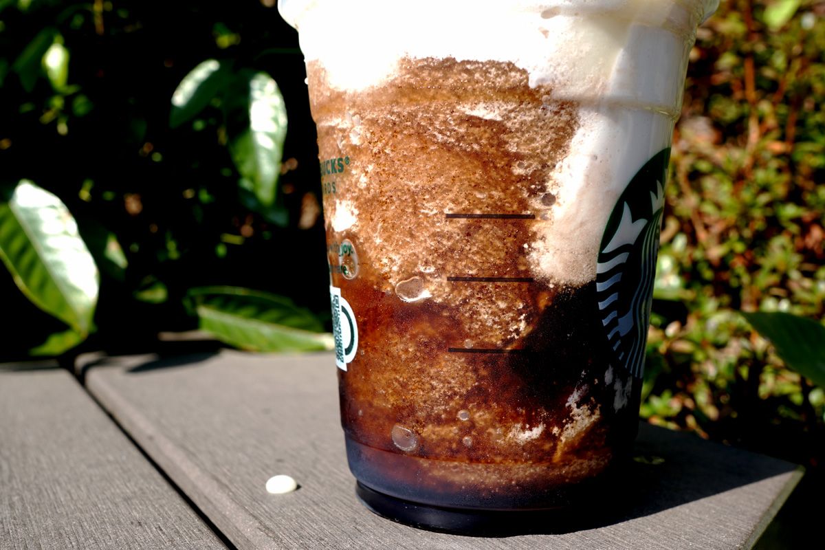フラペチーノとクリームを混ぜ合わせると、まさにコーラフロート! それも、バニラアイスが溶けてコーラと混ざり合う、ベストなタイミングで飲むコーラフロートです!!! まろやかで刺激的な味は、やみつきになりそう。