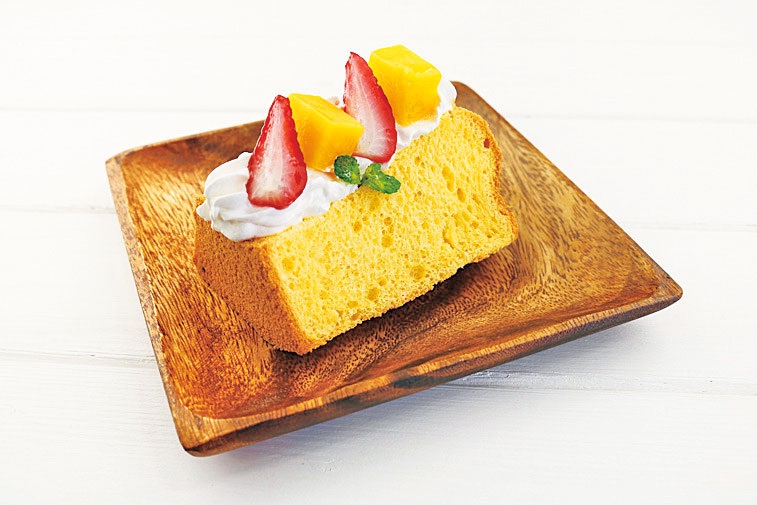 「自家製パンプキンシフォンケーキ」495円はふわふわの生地に生クリームとフルーツがマッチして美味!