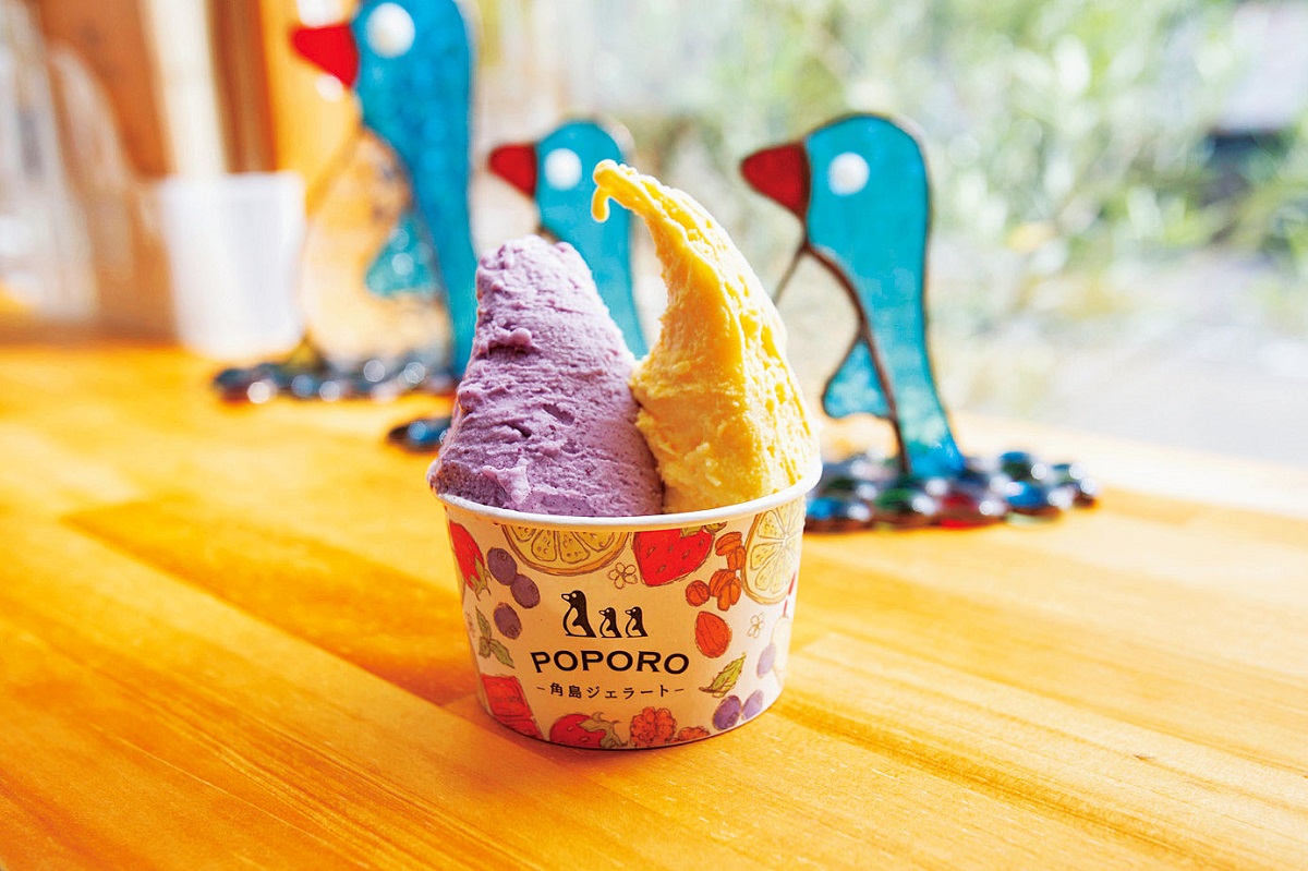 角島大橋から車で約3分の場所にある「角島ジェラートポポロ」。 風味豊かなジャージー牛乳と山口県産の食材をふんだんに使ったジェラートが人気です。